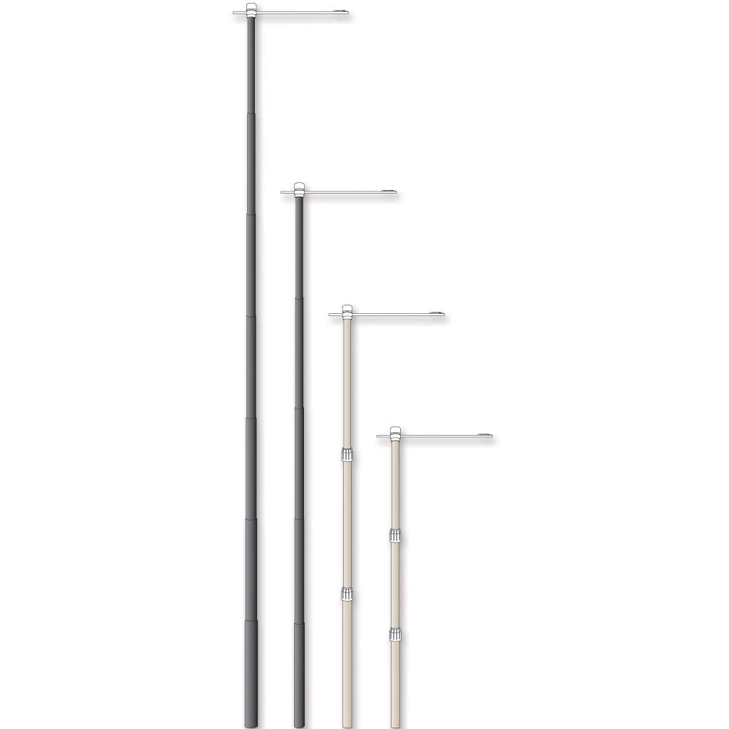 Heavy duty banner poles have a banner pole top that swivels 360 and a convenient clip at the end of the flag arm to hold flags and banners in place. Pole also has adjustable knobs to allow